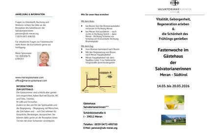 - Fastenverpflegung im Haus (Tee, Wasser, Gemüsesuppen, Fruchtsäfte)